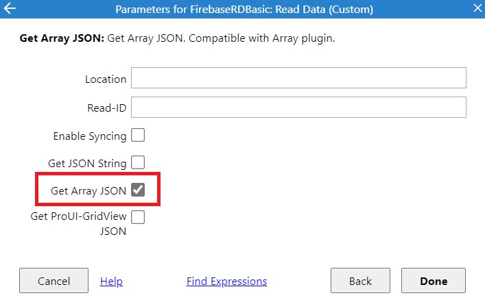 Enabling "Get JSON String" will get Data in the Original JSON format of Firebase.