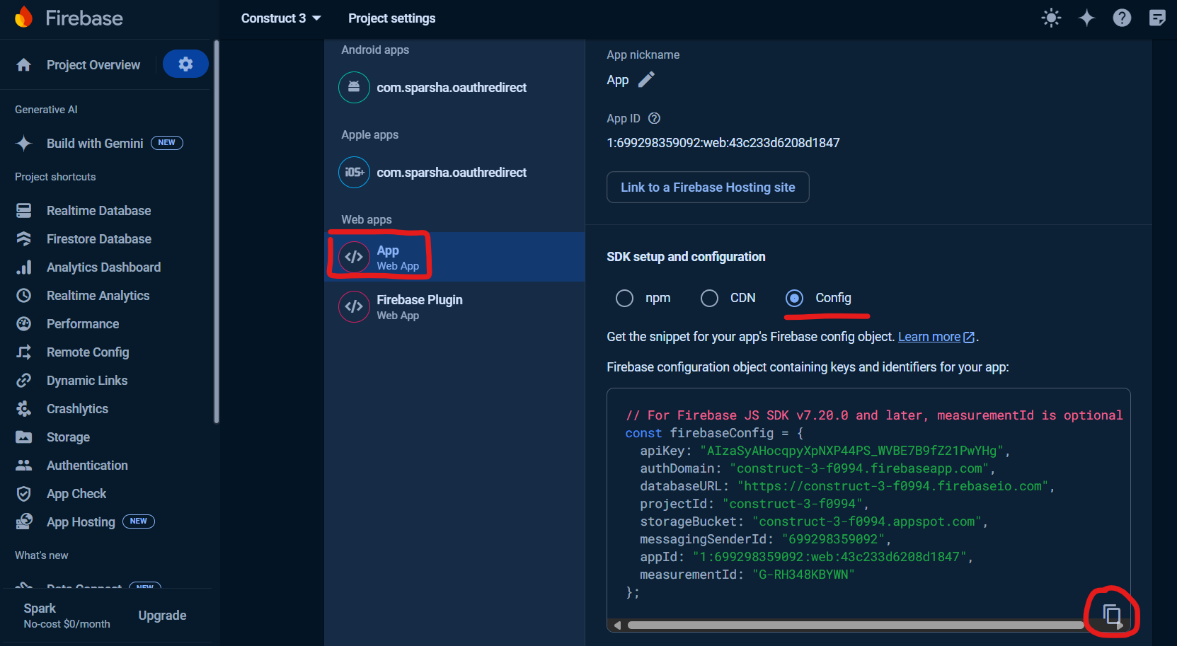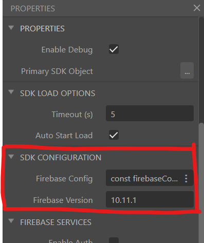 - Go to the Firebase SDK Plugin's Property Bar > SDK Configuration
