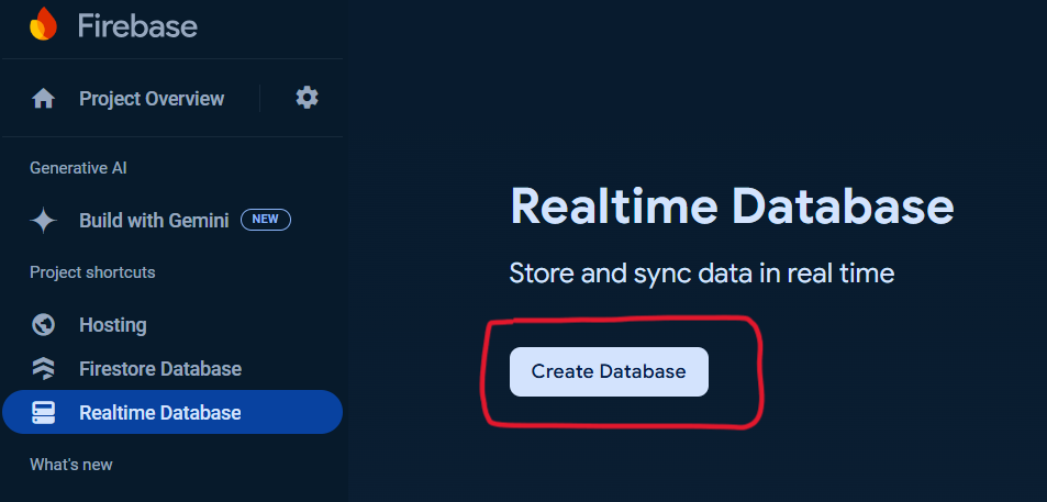 - (Optional) If you plan to use Firebase Realtime-Database, create a Database and reload the Firebase Console website