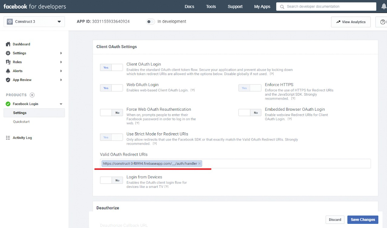 - Go to Authentication> Sign in method> Facebook, then Press on Edit button