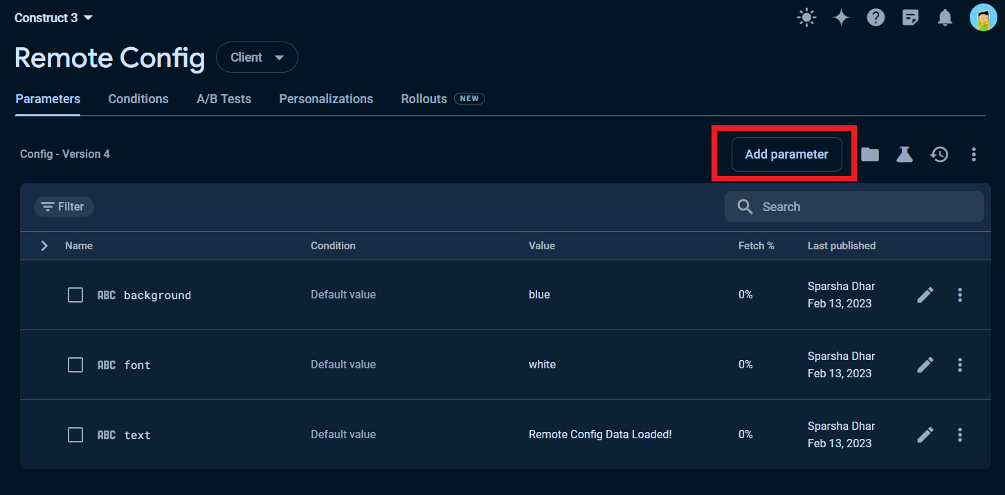 Create Remote Config Parameters​